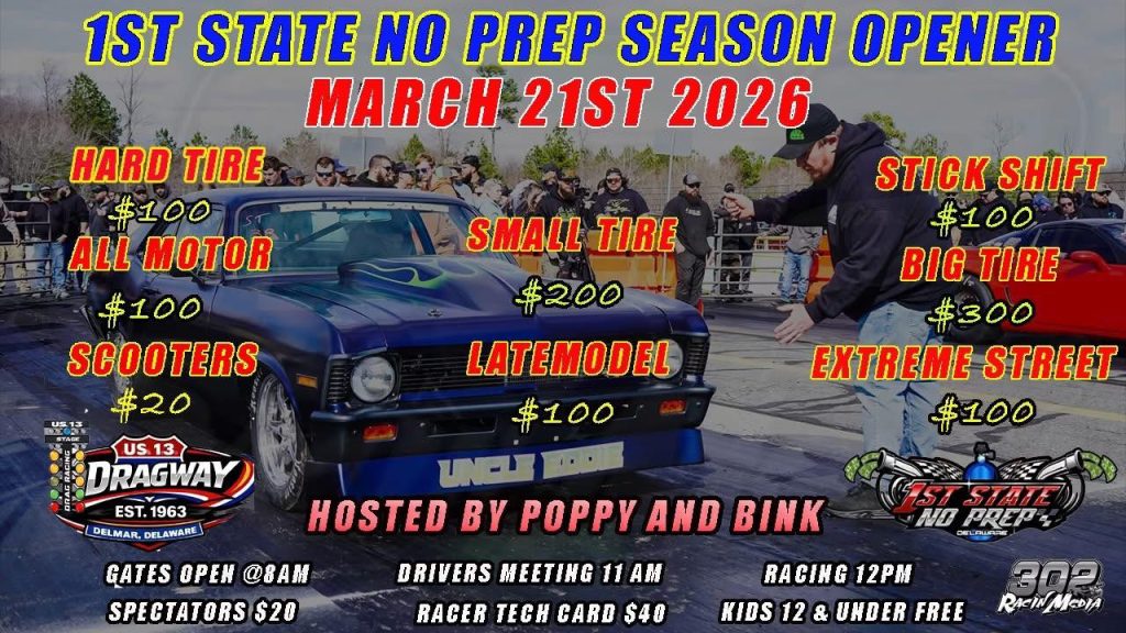 Location: US13 Dragway – 37854 Sussex Highway Delmar, DE 19940